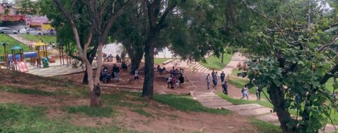 Visão da Rua Antônio Maia a partir da Biblioteca Padre José de Anchieta. Autor: Ana Luisa. Evento cultural em Perus. Registro de @cm_queixadas