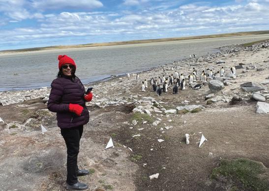 This is where in a rookery - a fiveand-a-half-hour Catamaran ride away - we had our first encounter with Magellanic Penguins (Figure 1). It was fascinating to see a large group of these ‘flightless birds’ in their natural habitat – sometimes gathered in a circle, hundreds more resting peacefully on the beach, and a few playfully jumping in and out of the water. It was a moving scene of Antarctic wildlife, and a dream come true for us.