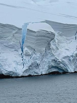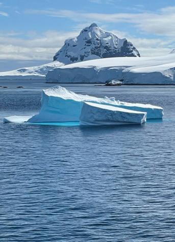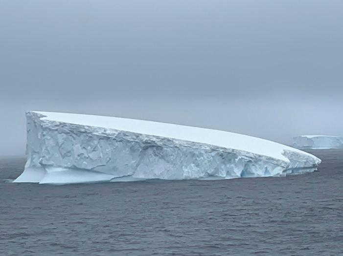 turbulent 500-mile stretch between South America and the Antarctic. Known for its 30-ft waves and sudden storms, it is a daunting route even for seasoned sailors. Fortunately, our modern cruise ship handled the crossing with ease, and we arrived in Antarctica peninsula without incident on January 12, and with a dramatic first view of a giant iceberg (Figure 2).