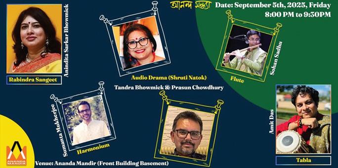 Ananda Mandir presented the play, “The Mahatma versus Gurudev”, at the Tagore Hall on August 15, 2025. The occasion attracted a “full house” of audience. Coincidentally, the play was staged on India’s 79th Independence Day, a day celebrated by Indians everywhere with great fervor.