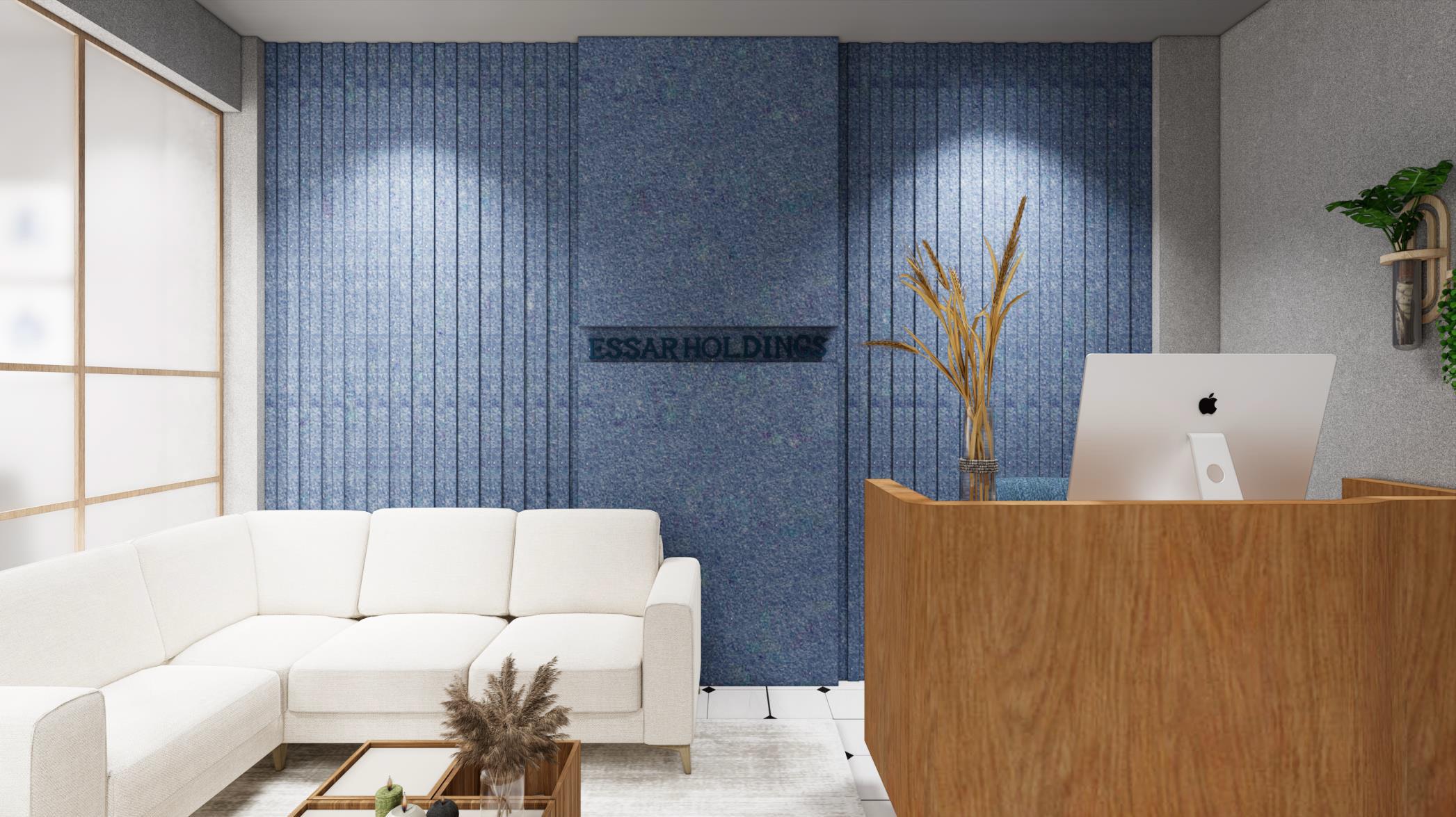 Directly opposite the lobby, the waiting lounge presents a modern aesthetic with its captivating blue backdrop.