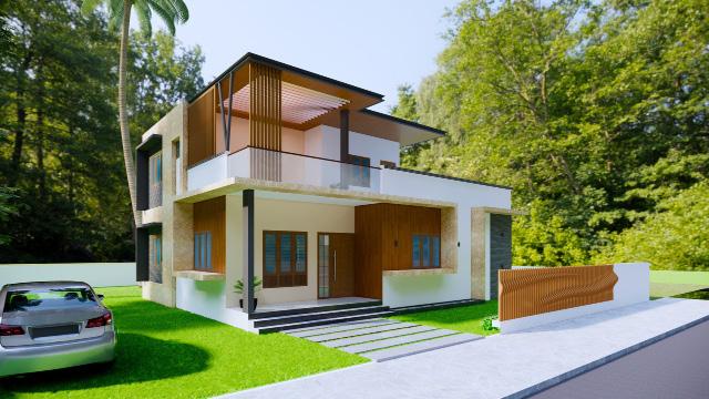 Focus on creating an impactful exterior elevation that reflects the rustic architecture.