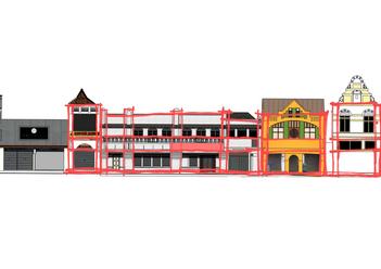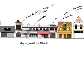 penerapan ornamen kawasan yang didominasi langgamkolonialdangaris vertikal
