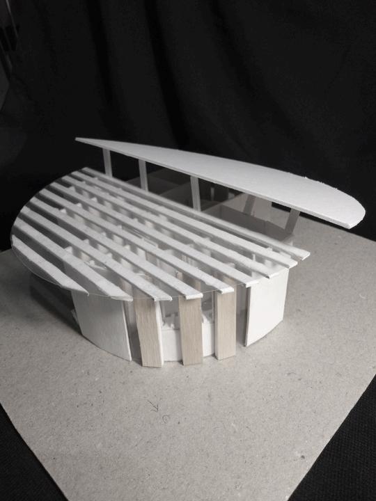 pywood sebagai struktur bentuklengkungdan insh pesteran eastomeric berwarnaputih