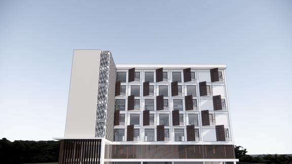 penambahan ornamen vertikal dan material beton ekspos sebagai representasi arsitektur modern