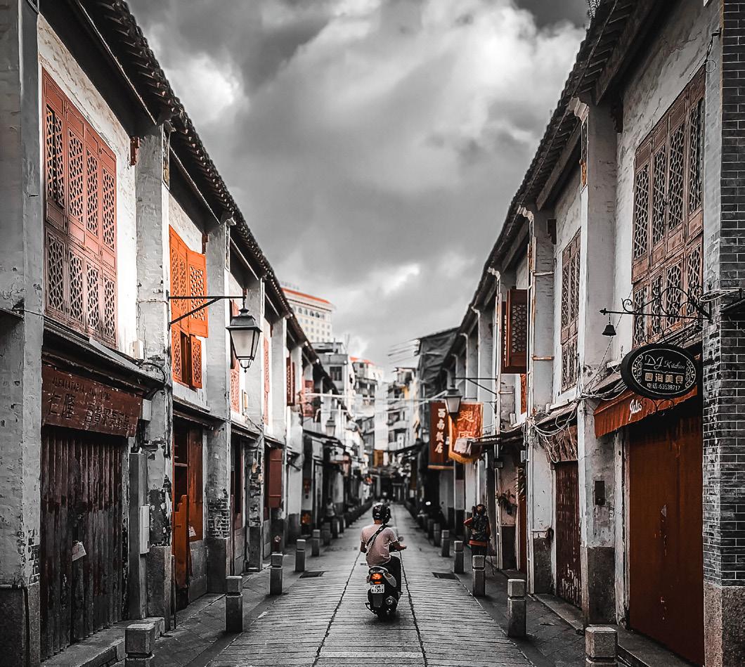 In the heart of the Pearl River Delta, where time folds upon itself, there is a corner that breathes in whispers. And it was here I put down roots in 2006, in a transition softened by the striking and enchanting Portuguese infuence, present in the distinctive Portuguese pavement, the cuisine, the street signs, and the architecture.