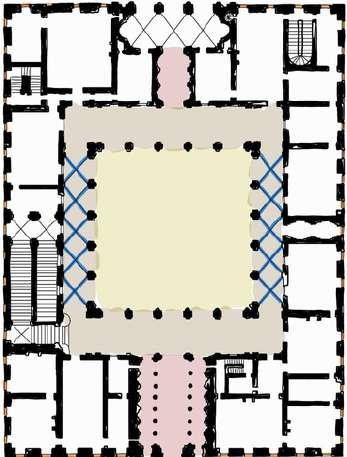 Según Roth (2007), Serealiza un acabado de almohadillado con ladrillo, este es una tradición de Florencia, sin embargo, la degradación por niveles fue algo innovador; aquello ayudaba a distinguir los niveles. Por otro lado, se continuó el uso de la piedra serena