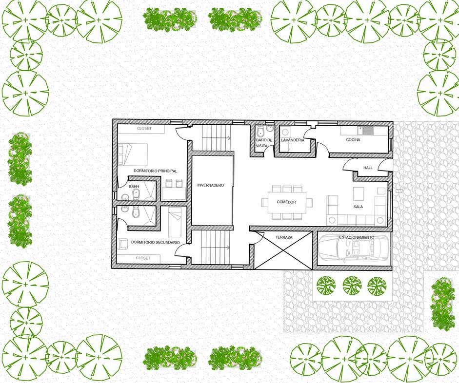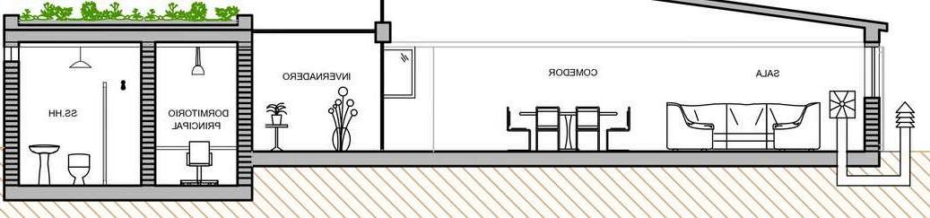 Encima de los dormitorios se habilitará vegetación que ayude a captar el sol por el día, mientras que en la noche, la tierra (por tener gran inercia térmica) logrará expulsar calor