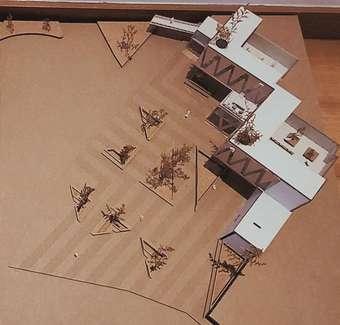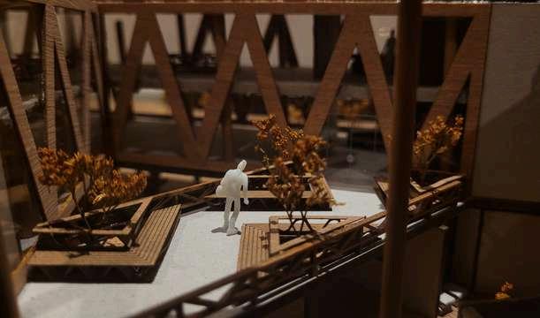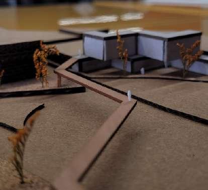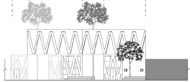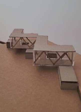 Se propuso iniciar a partir de la creación de una grilla, la cual ayudó a dimensionar los cubículos de los baños y la posición que ocuparía en el proyecto. Después, para integrar el mirador utilizamos la misma forma cuadrada que creaban las unidades para envolverlas con la rampa que conectaría hacia el pedestal Asimismo, en la parte superior, se colocó un techo sol y sombra de forma que protegiera de la luz del sol directa Finalmente, se decidió que continuase el mismo sol y sombra por el primer piso y que los vanos jugaran al mismo tiempo con las copas de los árboles.