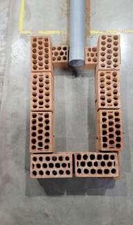 Primero, con una escuadra, wincha y tiza dibujamos la silueta de la caja de registro 1, alrededor de esta ubicamos ladrillos que hicieran el papel de la caja, a continuación hicimos lo mismo al frente (max 12 metros) Finalmente se le agregó una capa de arena para que la montante tuviera una pendiente del 1%