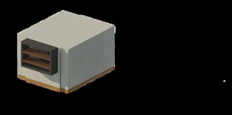El proyecto tiene un techo inclinado de tejas negras para generar inercia térmica, este captará el calor del día y lo retendrá mediante los componentes del mismo. Por otro lado, el invernadero al estar bajo una ventana por la que entra el sol ayudará a captar calor fácilmente