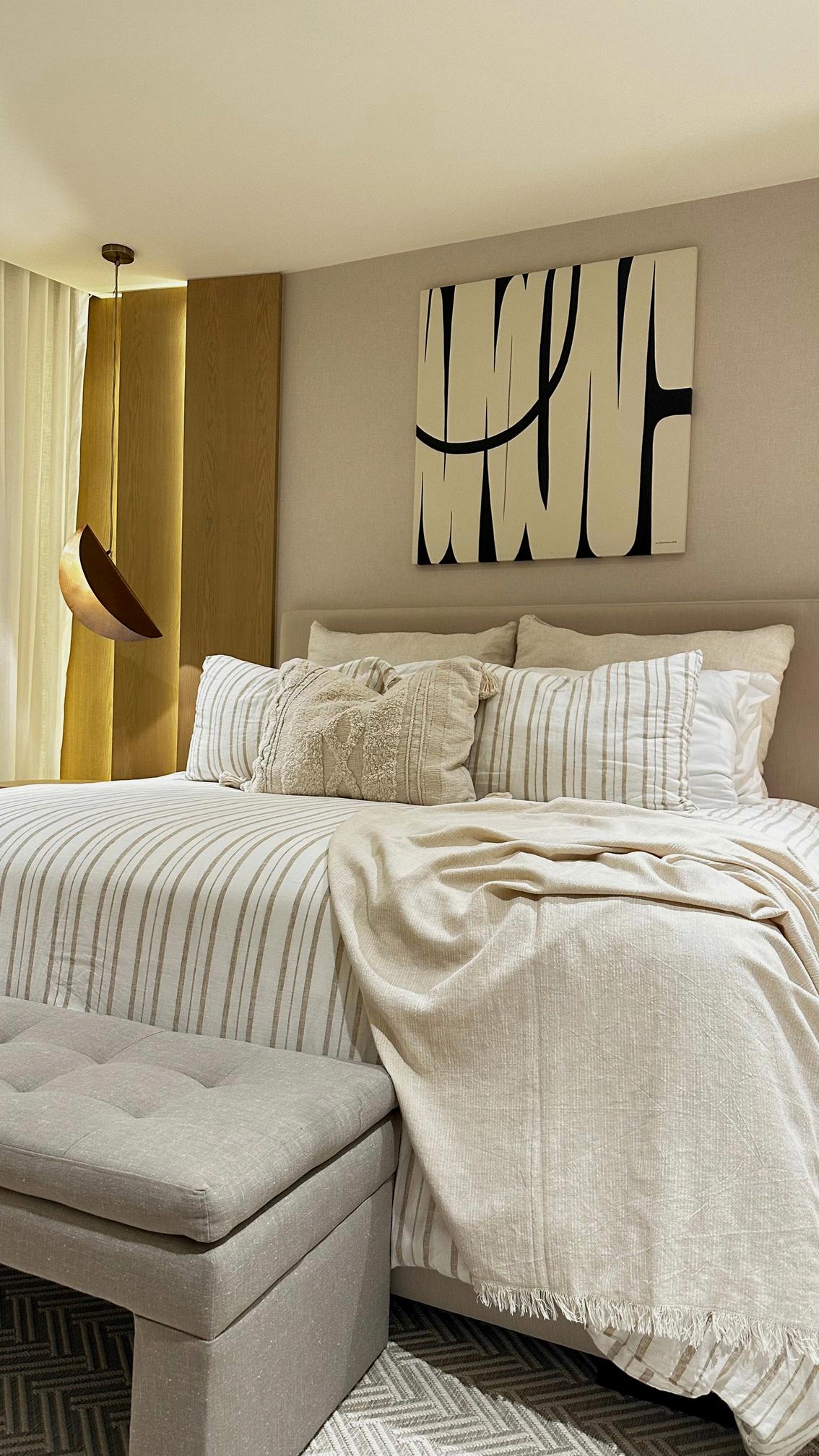 The color palette revolves around light and monochromatic tones with textures and natural fibers that provide a sense of peace and freshness Light woods such as oak and textures like linen, cotton, and raffia take center stage in the design.