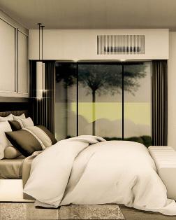 La decoración del dormitorio se centra en crear una atmósfera relajante y acogedora, con tonos neutros y detalles cuidadosamente seleccionados. Además, el dormitorio cuenta con iluminación regulable para adaptarse a diferentes necesidades y preferencias, así como con cortinas opacas para garantizar el confort.