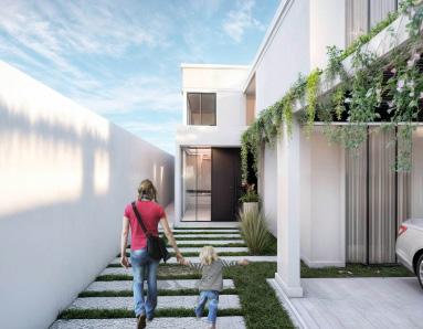 La vivienda se destaca por su exterior elegante y sobrio, caracterizado por detalles en colores neutros y predominio del blanco. | La fachada presenta líneas limpias y modernas, con un diseño que refleja un estilo contemporáneo y minimalista.