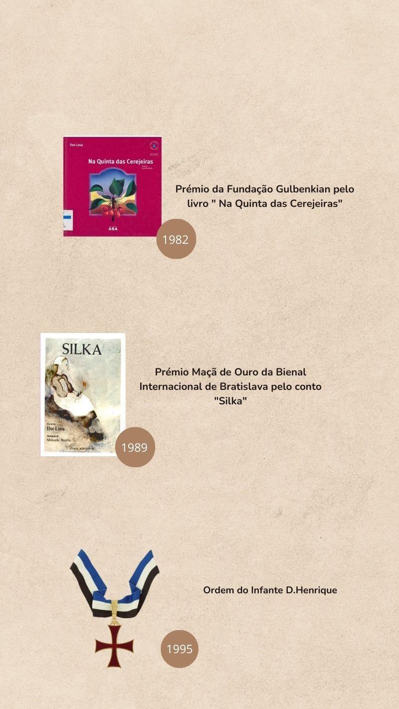 Em 1984 recebeu o Grande Prémio Gulbenkian, premiando o conjunto da sua obra para crianças.