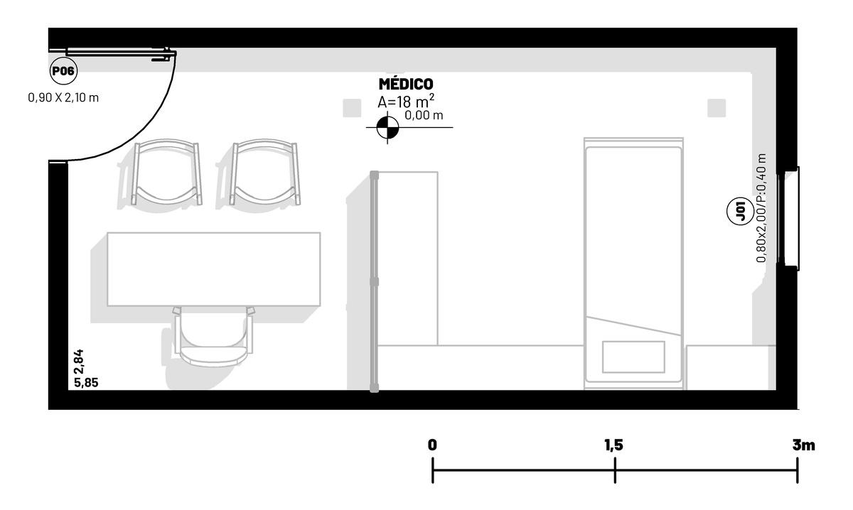 Consultório Médico Maca de Atendimento, Armários, Mesa e Cadeiras 3 pessoas Obrigatório 3 20 60