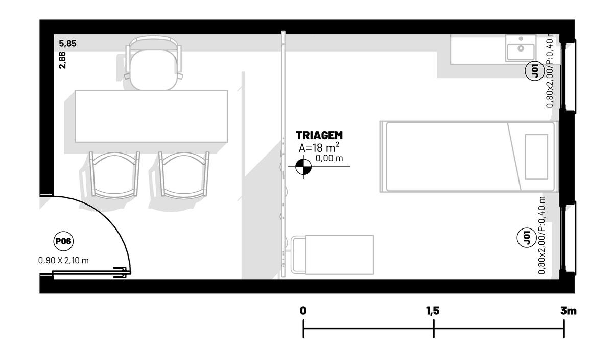 Mesa, Armários, Cadeiras, Maca de atendimento, Balança e Cuba de apoio 20 pessoas Obrigatório 1 60 60