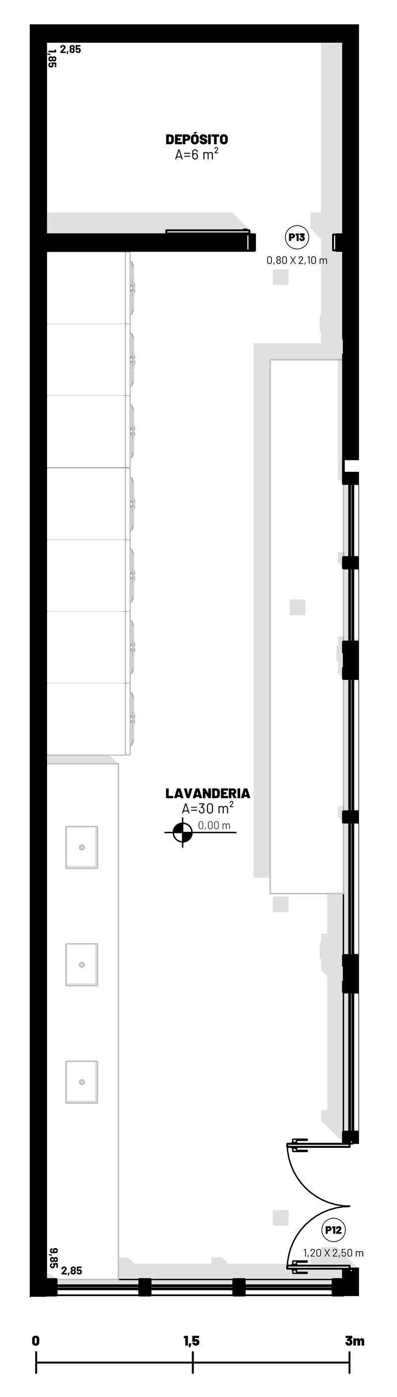 Lavanderia 20 Máquinas de lavar e secar (11kg) Mesas de passar, Ferros de passar, Sala de espera, Armários, 5 tanques e Araras 20 pessoas Obrigatório 1 30 30