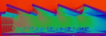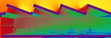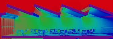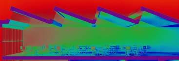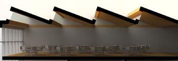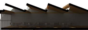 North-facing clear sawtooths bring in sufficient daylight into the mezzanine space without being too bright in clear sky conditions.