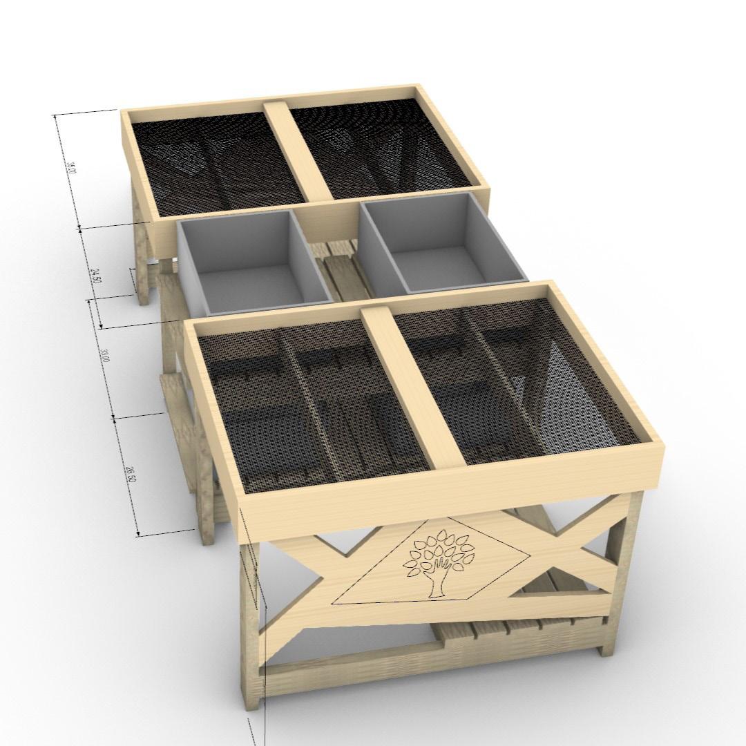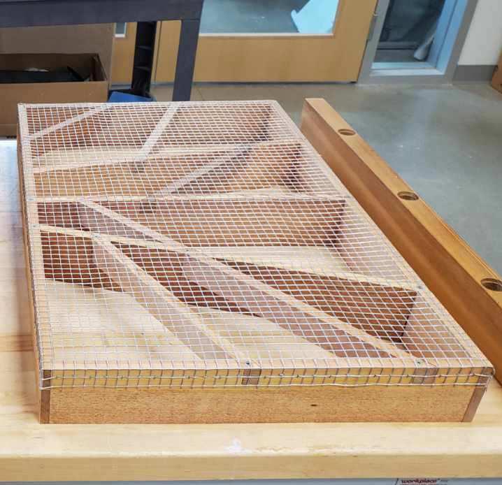 This is a 12 person design/build studio project to create a FUNCTIONAL potting table for Abundance Farm. The final design included STORAGE SPACE for dirt bins and shelves underneath each potting surface. Each potting surface is split in the middle by a wooden piece that holds potting instruction signs. The supporting pieces holding up the chicken wire takes on a treelike form that branches out to represent the growing plants.