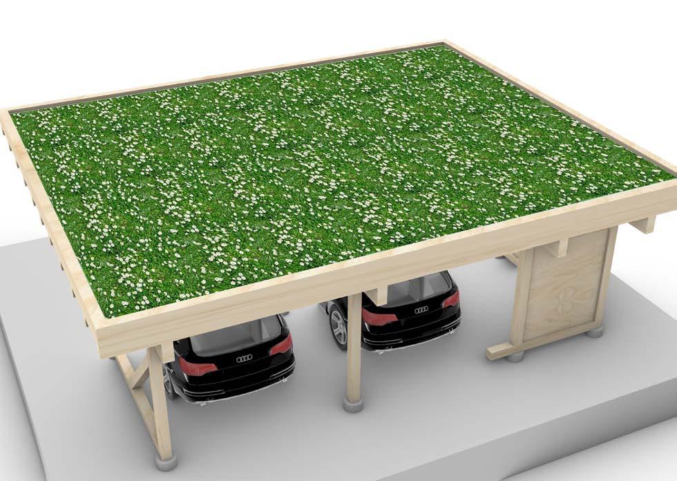The design of the Ecological Carport is based on the principles of ecological architecture developed over the years by architect Tullio Inglese. This project aims to preserve the biosphere, which is critically important for all forms of life on Earth. The Ecological Carport physically elevates the biosphere and is designed to support a layer of soil which can be planted with ground cover and wild flowers, making it a perfect habitat for bees, insects, butterflies, and birds. While protecting cars from rain and snow, the Ecological Carport simultaneously provides a semi-enclosed area for a lawnmower, garden tools, and recycling containers.