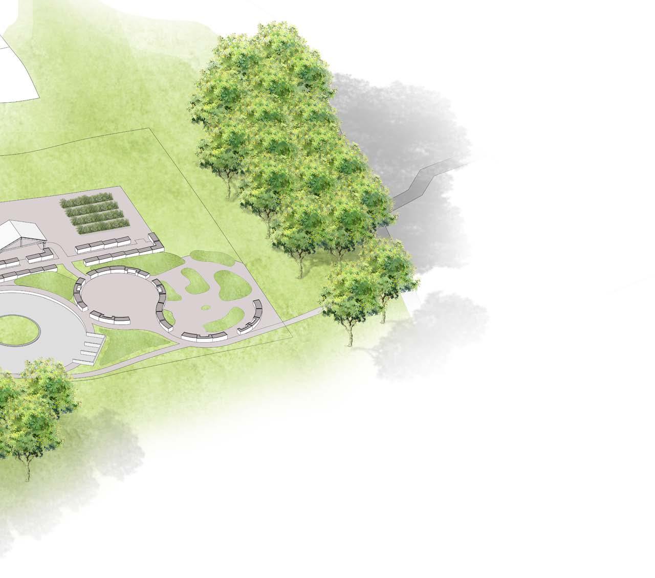 The Placeholder Project aims to create a FIGURAL CENTER for the Abundance Farm by forming gathering spaces with raised planter beds and benches. The forms of the new pray area for outdoor services and a nature-scape educational garden respond to each other to create a formal center to the site. The playscape’s form opens up to engage with the WILDERNESS of the site and encourage EXPLORATION and BIOEDUCATION