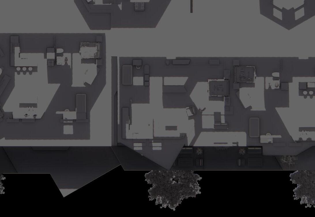 The arrangement of units and public spaces create a welcoming environment for occupants and visitors within the intervention. These public zones intertwine within the residential area to create a gradient of public and private space.