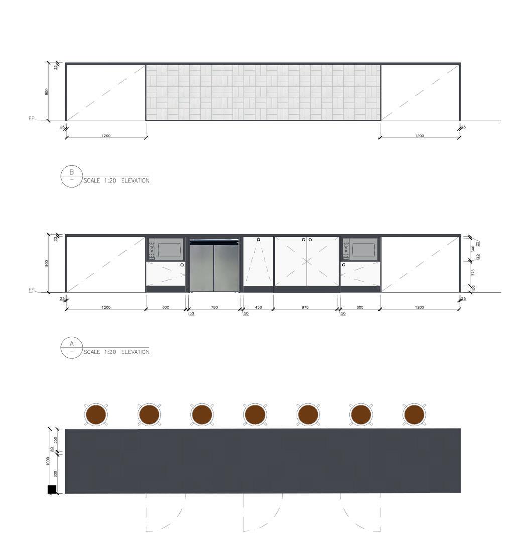 Cad Drafter for interior design commercial projects. Responsible for the development of all documentation from the concept to the construction drawings.