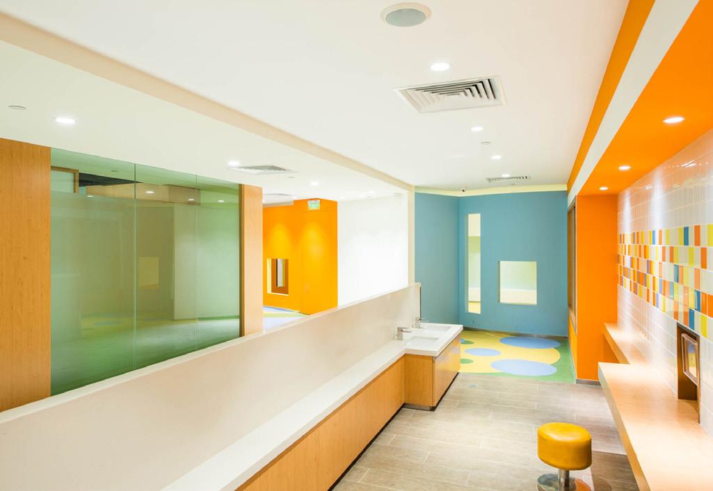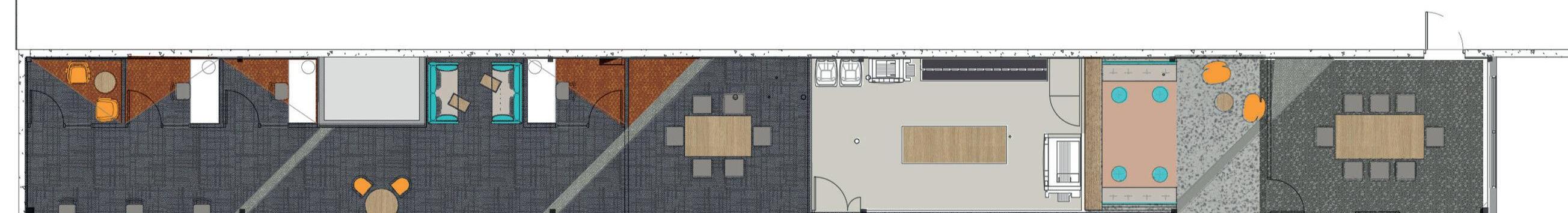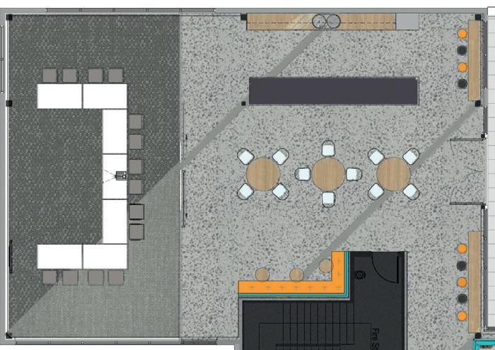 A carefully curated finishes palette comprising of natural materials and patterns, maximising transparency and access to daylight through carefull space planning, and a focus on creating a fitout that actively supports health, knowledge and awareness.
