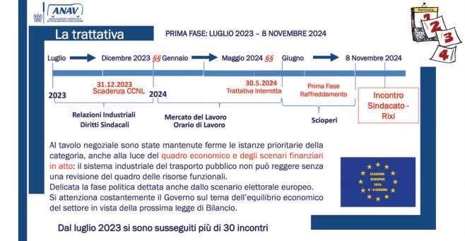 È stato sempre sostenuto da ANAV che il negoziato - sulla parte economica del contratto - a fronte delle importanti richieste di parte sindacale, era inevitabilmente correlato agli interventi richiesti dalle Associazioni in sede di manovra di bilancio prima e in altre misure economiche poi, come poi è accaduto, nel provvedimento sulle accise (sul quale si consulti articolo di approfondimento più avanti). E questo perché sin dall’inizio, ANAV ha ribadito il condizionamento alla luce degli scenari fnanziari in atto. n uesto senso gi all’avvio della trattativa era fne settembre 2023) le Associazioni hanno consegnato alle organizzazioni sindacali un documento sul quadro economico. Gli incontri negoziali, calendarizzati con una frequenza coerente con la rilevanza delle tematiche sul tavolo, hanno visto le parti impegnate, durante l’inverno 2023-