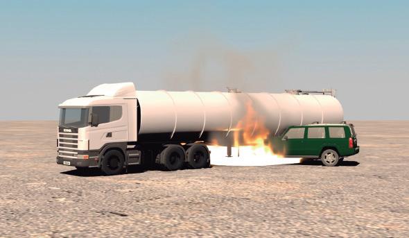 6. Si el vehículo es afectado por fuego, enfriar con chorros de agua lanzados a la mayor distancia que permita la fuerza del agua.