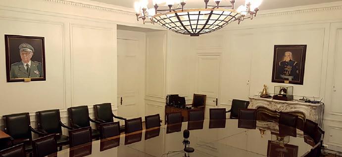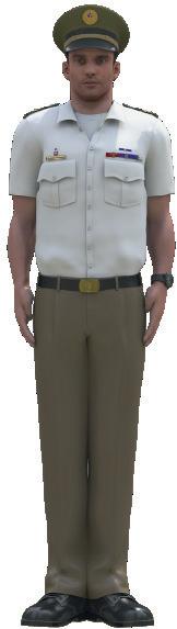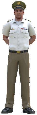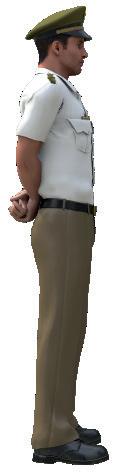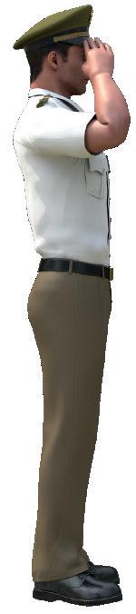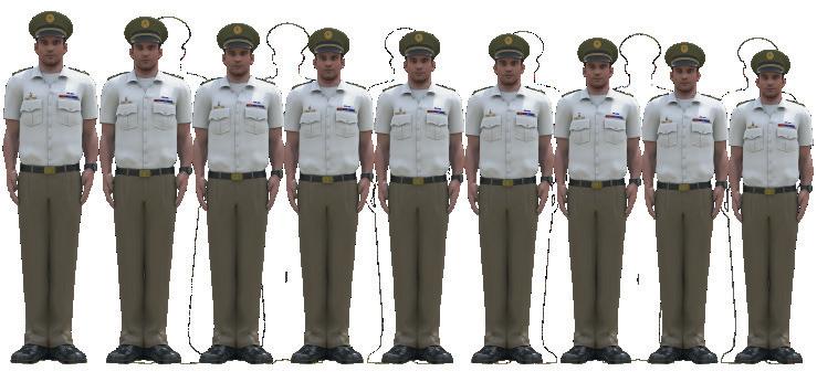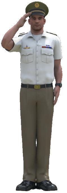 Solo los oficiales de mayor jerarquía de la formación pueden llevar la mano a la visera en señal de saludo, o quien esté autorizado conforme al reglamento interno.