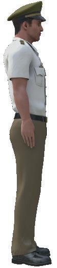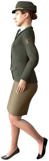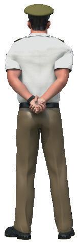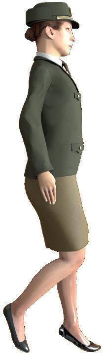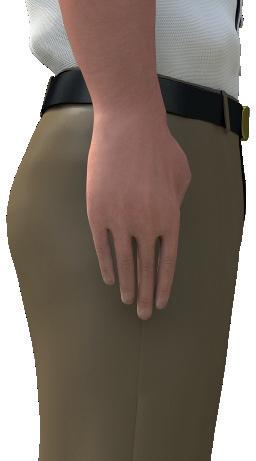 Los brazos se deben mover alternadamente con naturalidad. El brazo que va hacia adelante se lleva hacia el cuerpo en una posición casi horizontal y en línea recta con la mano, por lo que el codo se proyecta hacia adelante. La mano debe ir con los dedos extendidos en posición de saludo, y la palma debe tapar la hebilla del cinturón (figura 23).