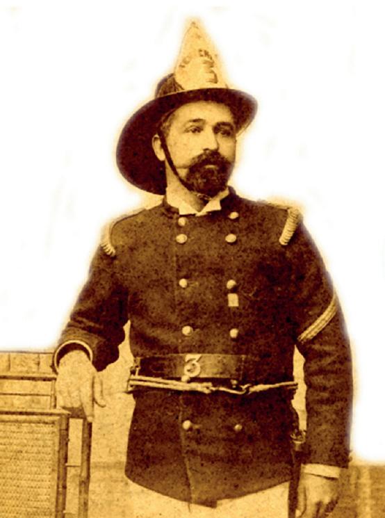 Bombero con vestimenta de mediados del siglo 20, aproximadamente.
