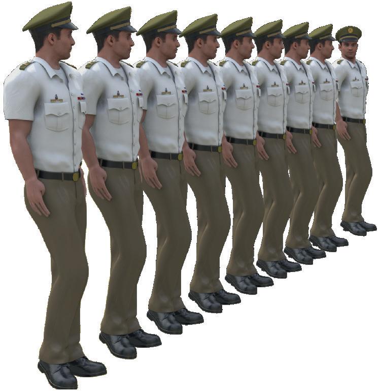 A la voz ejecutiva, el primer bombero/a lleva la vista hacia la izquierda e inicia el conteo con la voz “¡UN!”, quedando luego con la vista al frente.