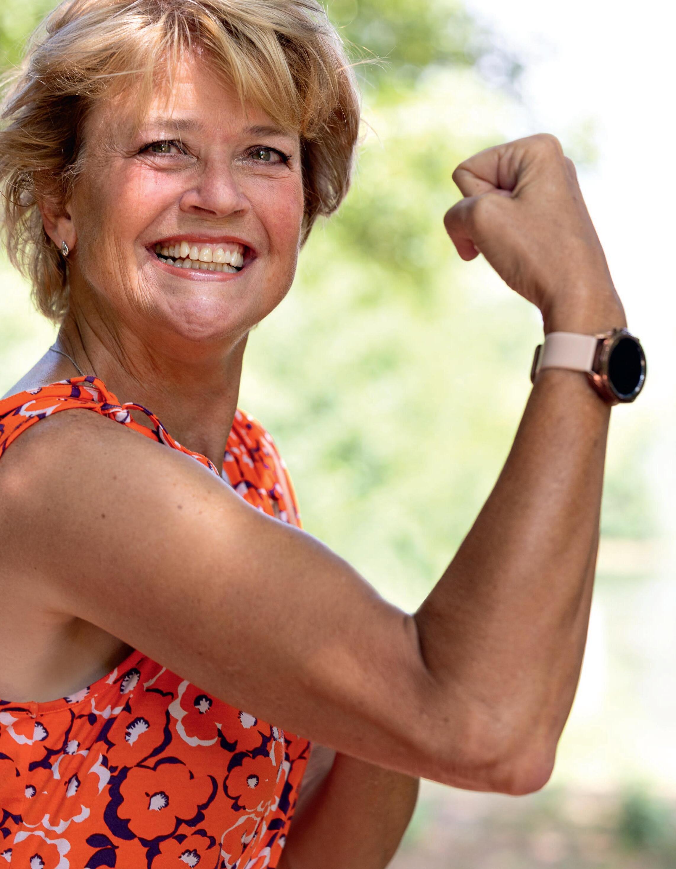 “65! Als ik dat hardop zeg, geloof ik mezelf gewoon niet. Ik denk dat ik een jeugdige 65’er ben. Ik heb ook het gevoel dat ik ergens ver in de negentig word. Maar met mijn blessuregevoeligheid zal er nog wel wat gebeuren. Ik kom vast in een fase waarin ik afhankelijk word van anderen en Frank, mijn man, ook – wie gaat het eerste aftakelen? Het staat als een paal boven water dat we voor elkaar gaan zorgen, maar pas als je er zelf mee te maken krijgt, weet je hoe zo’n levensfase echt gaat zijn.” Dan weer even terug naar het ‘nu’: “Wat ik gaaf vind aan ouder worden: dat je blijft groeien. Zoals nu met de borstreconstructie. Ik dacht eerst: mensen gaan zien dat ik geen borst meer heb, ik denk dat ik een prothese wil. Terwijl ik nu denk: als die andere borst ook raar gaat doen, maak maar plat. Dat hoort dan bij mij, dat ben ik. Het is een proces dat je moet doormaken. Ik beheers nu de kunst van mezelf accepteren zoals ik ben.”