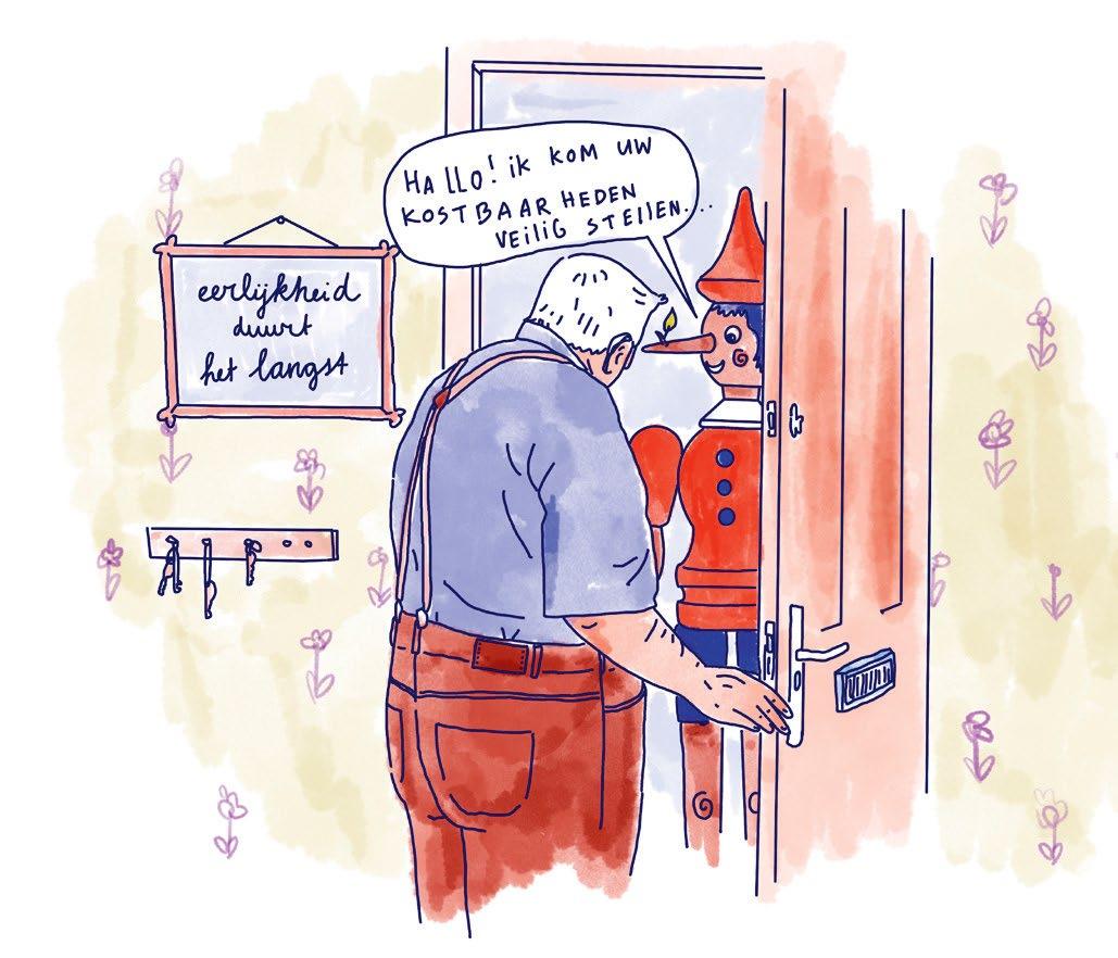 zei hij. Maar het bewijst wel: boeven worden steeds handiger en brutaler. Denk aan nepagenten die voor de deur staan. Of uw bank, die helemaal uw bank niet blijkt te zijn, die contact met u opneemt. Dat is vervelend en kan verstrekkende gevolgen hebben, maar het is niets om u voor te schamen. In 2023 waren 2,3 miljoen Nederlanders het slachtoffer van online criminaliteit. En 65 procent van de Nederlanders had in datzelfde jaar een mailtje, telefoontje of ander bericht ontvangen dat waarschijnlijk van een oplichter was. Genoeg reden voor ons om stil te staan bij deze problematiek, maar ook hoe we ons tegen al deze ellendelingen kunnen wapenen. Dat doen we met gouden tips, die u trouwens ook kan beluisteren in een nieuwe podcast-serie, waarover u op bladzijde 22 van alles leest. Belangrijkste conclusies: een bank vraagt u nooit om uw bankgegevens. De politie komt nooit aan de deur om uw waardevolle spullen in beslag te nemen. En, speciaal voor Simon, het is té toevallig dat er in een groepje van vijf mannen niemand kan afrekenen bij de parkeerautomaat.
