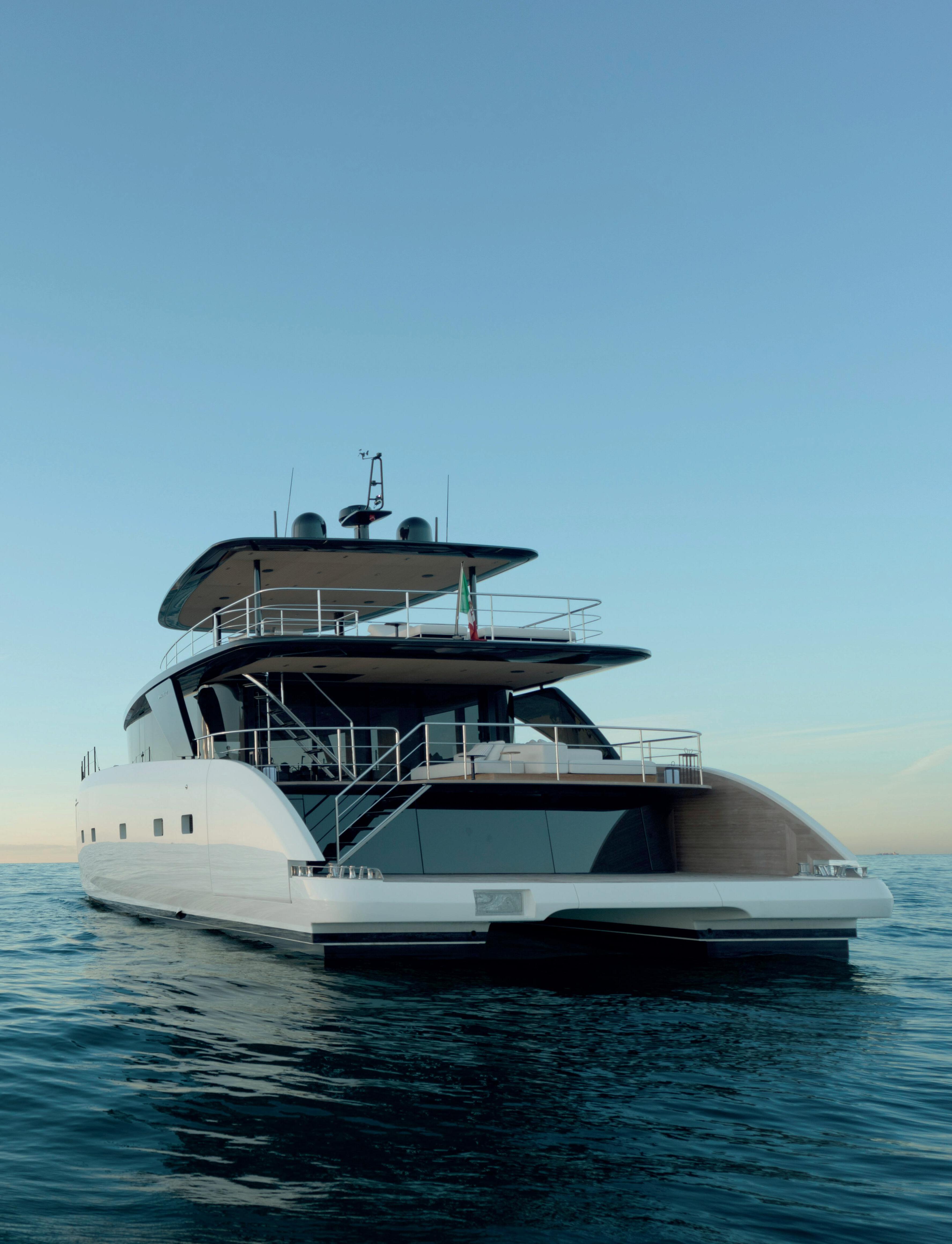 The Prestige Yachts M-line presents an innovative vision in the world of multihull motor yachts.