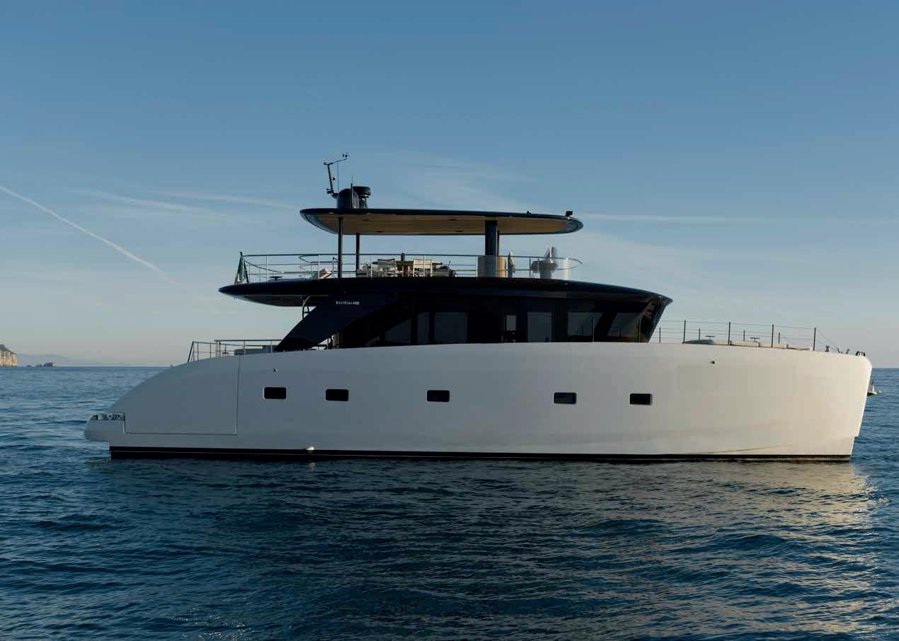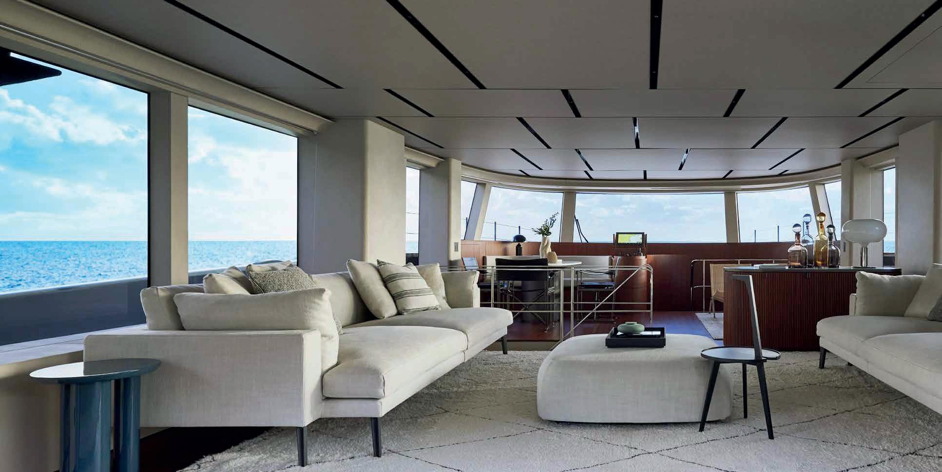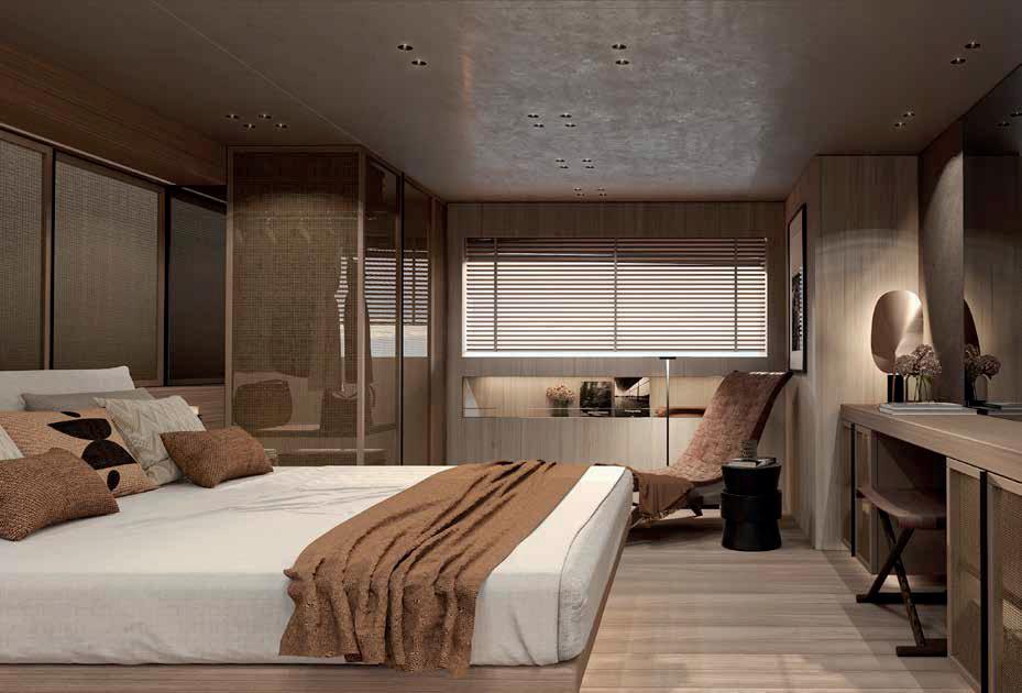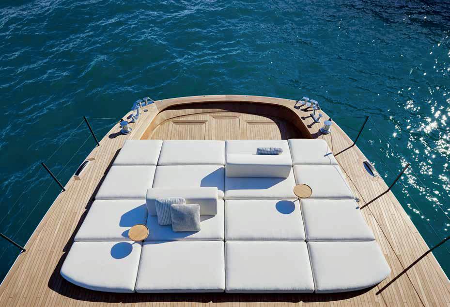 “LARGE VOLUMES AND SUCH A GENEROUS WIDTH GENERATE A SPACIOUSNESS NEVER SEEN BEFORE ON A 75FT BOAT.”