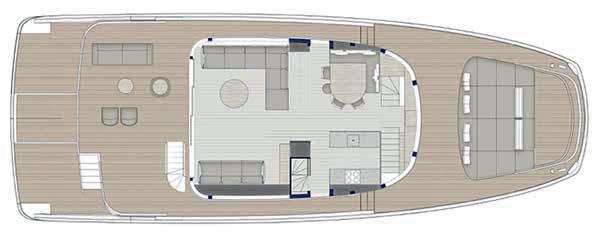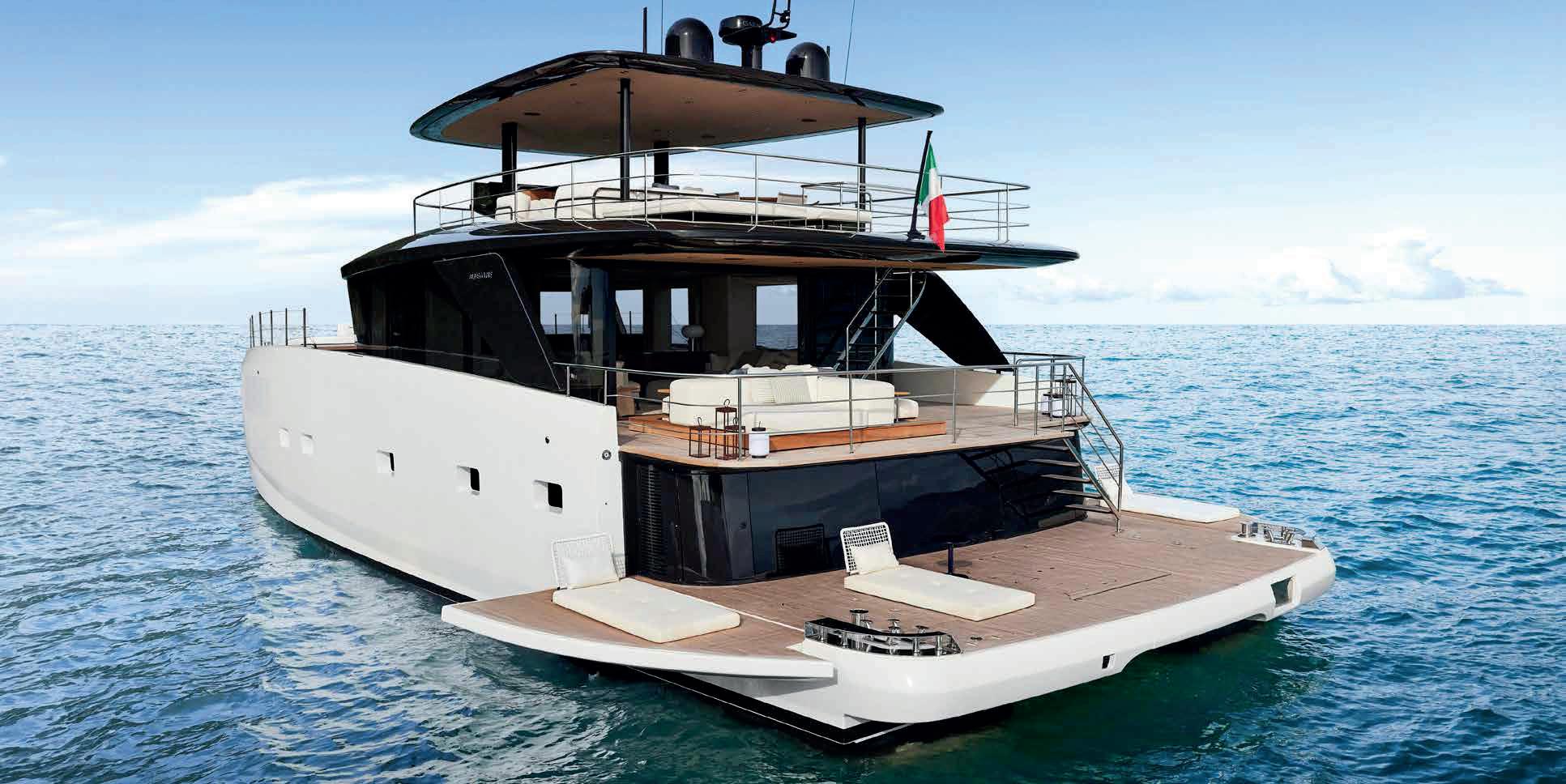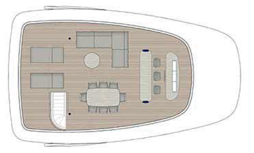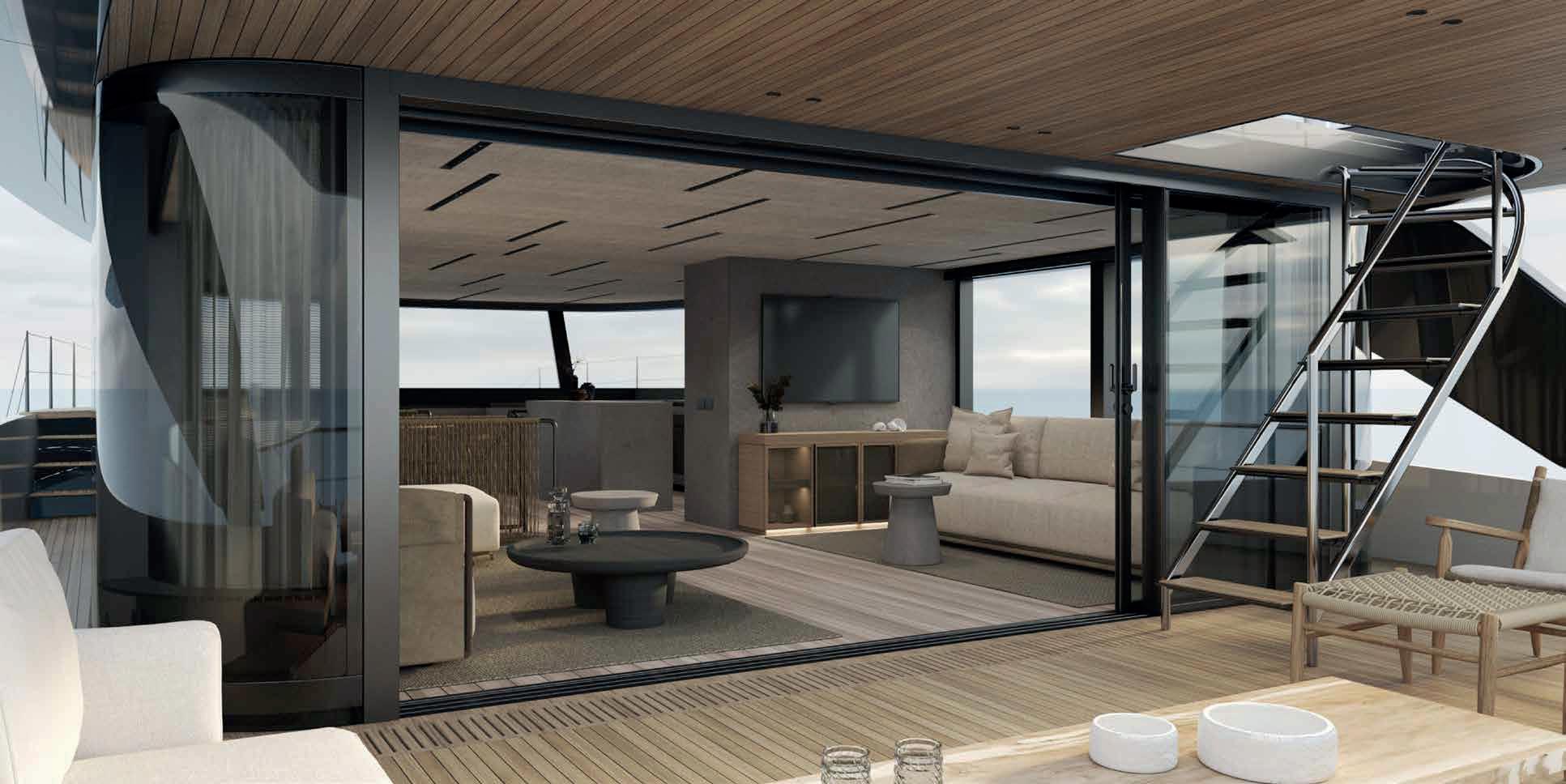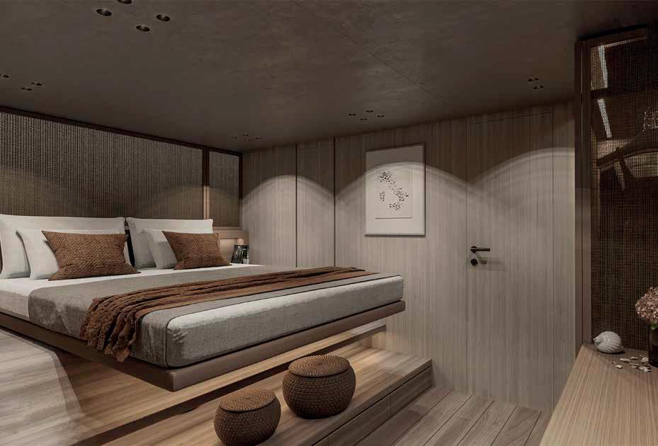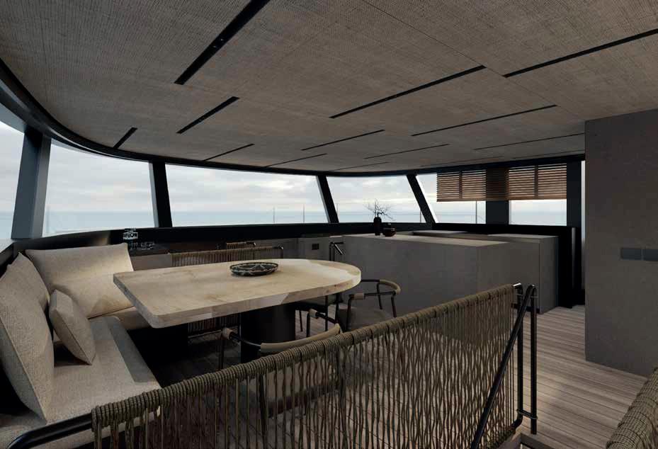“LARGE VOLUMES AND SUCH A GENEROUS WIDTH GENERATE A SPACIOUSNESS NEVER SEEN BEFORE ON A 75FT BOAT.”
