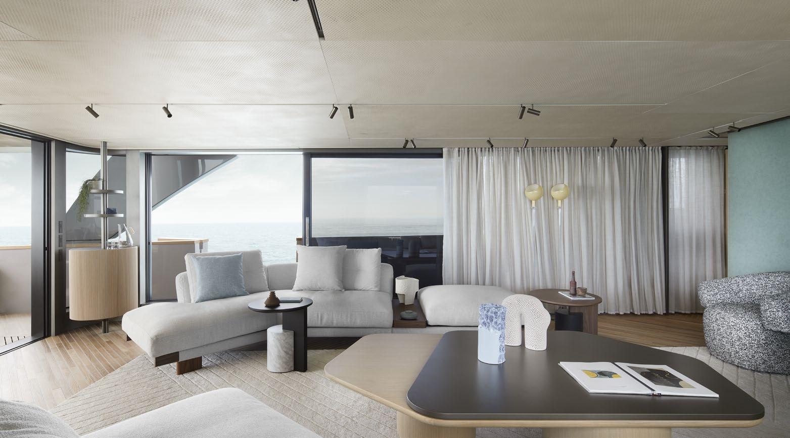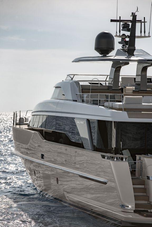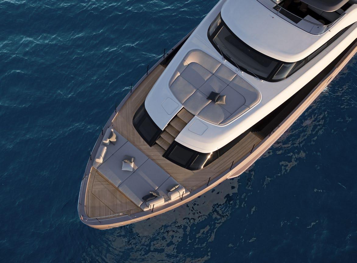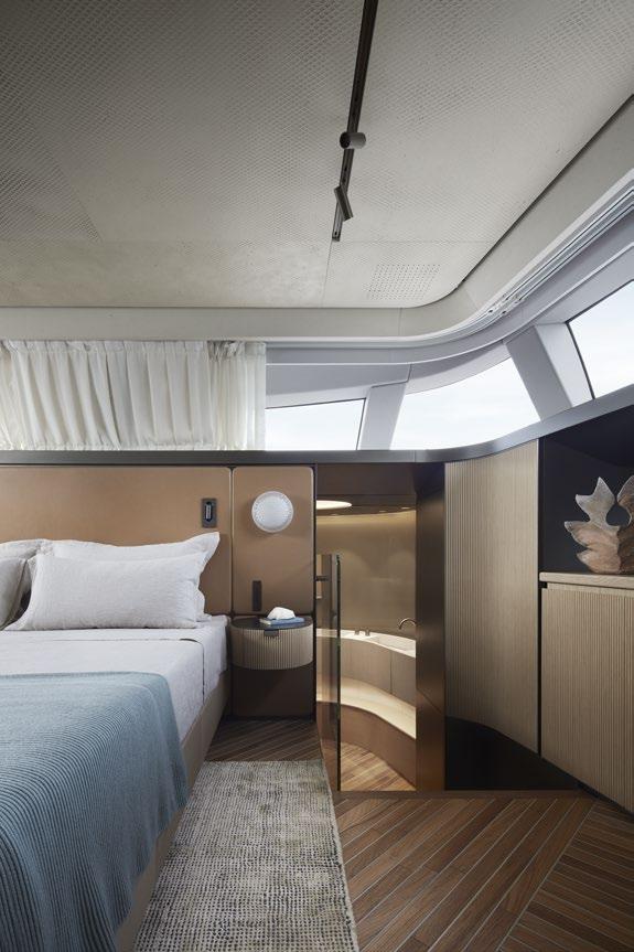 The hull has been engineered to improve performance with hybrid propulsion, optimising resistance even at lower speeds, between 6 and 10 knots.