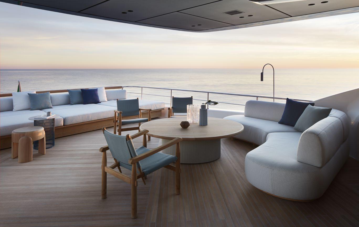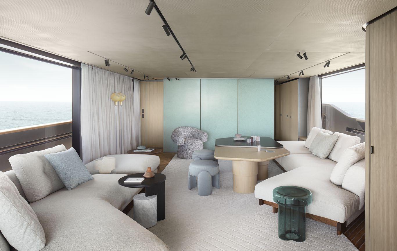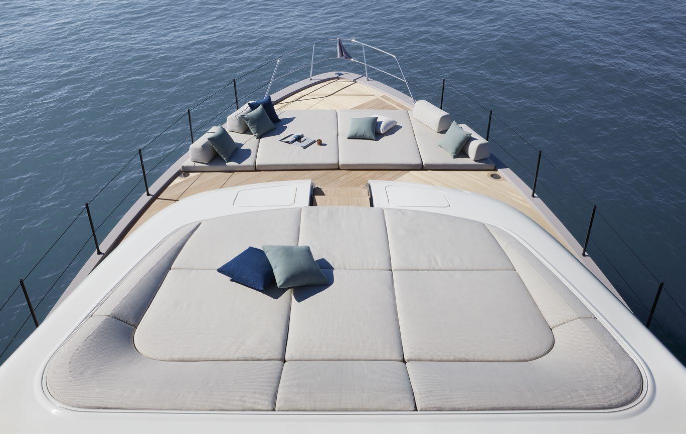 As an option, fabrics made from recycled materials can be chosen for the external furnishings, just as there is the possibility to use Evo leather in the wheelhouse area.