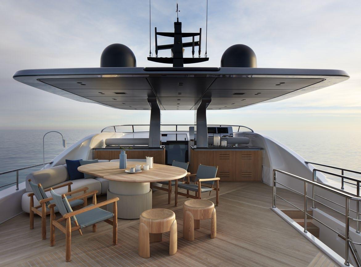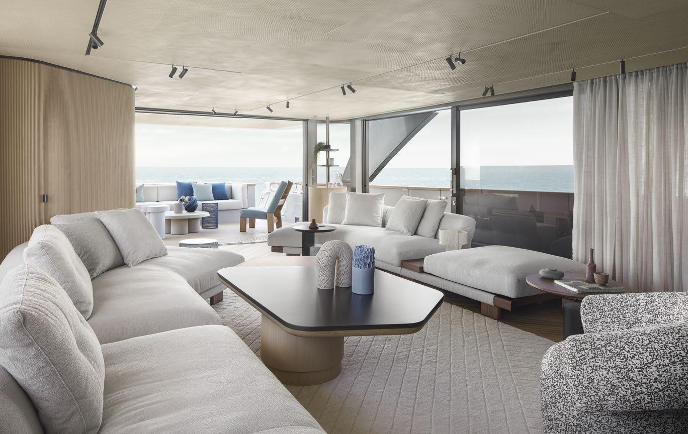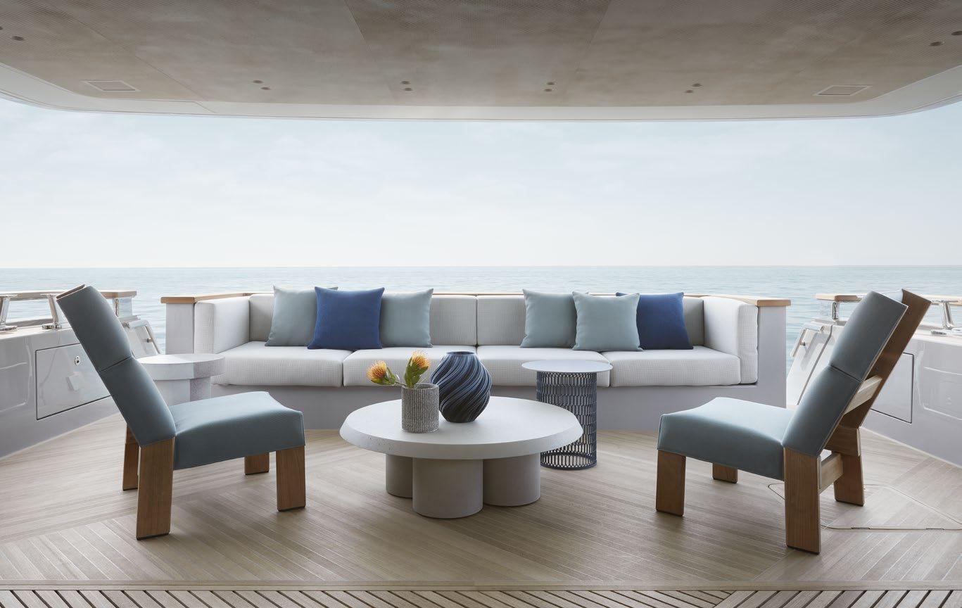 As an option, fabrics made from recycled materials can be chosen for the external furnishings, just as there is the possibility to use Evo leather in the wheelhouse area.