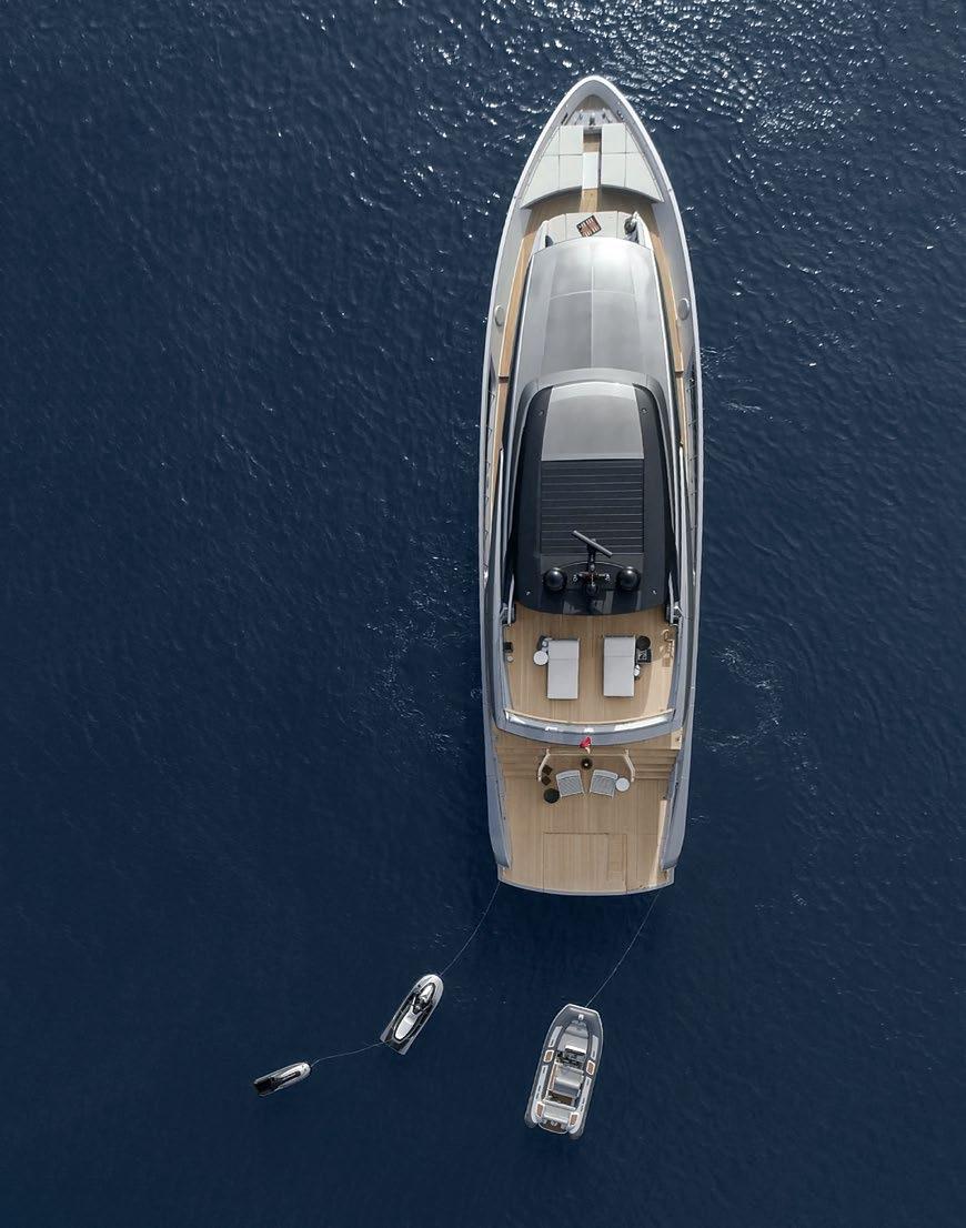The primary material for hulls, decks and superstructures is a composite, a mixture of fiberglass or carbon fiber with special resins. While the hull and deck are made with fiberglass, the superstructures feature a composite based on carbon fiber, lighter and stronger, capable of granting greater stability to the boat on the water, for maximum on-board comfort.