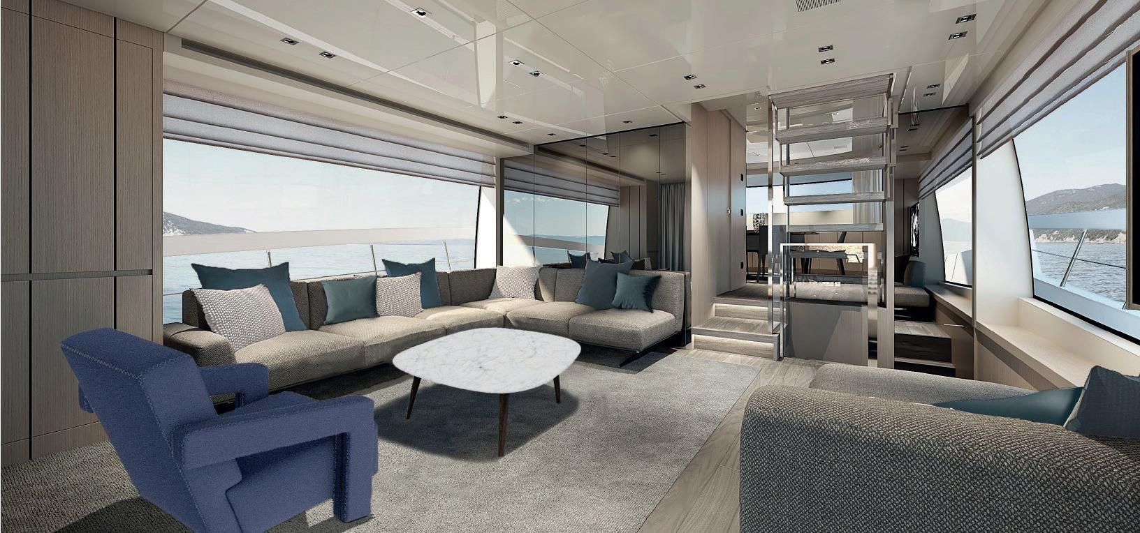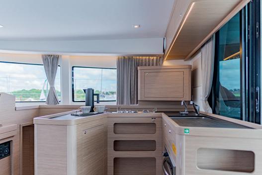 connects the modern galley with the cockpit for a more sociable ambience, and expansive views of the ocean.
