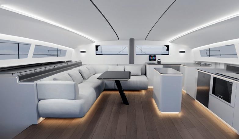 “The brand is o ering a di erent approach to yachting, and it’s really shaking things up in terms of design. It’s disruptive, challenging traditional layouts to provide multi-use onboard spaces with more direct access, both physically and visually, to the sea.
