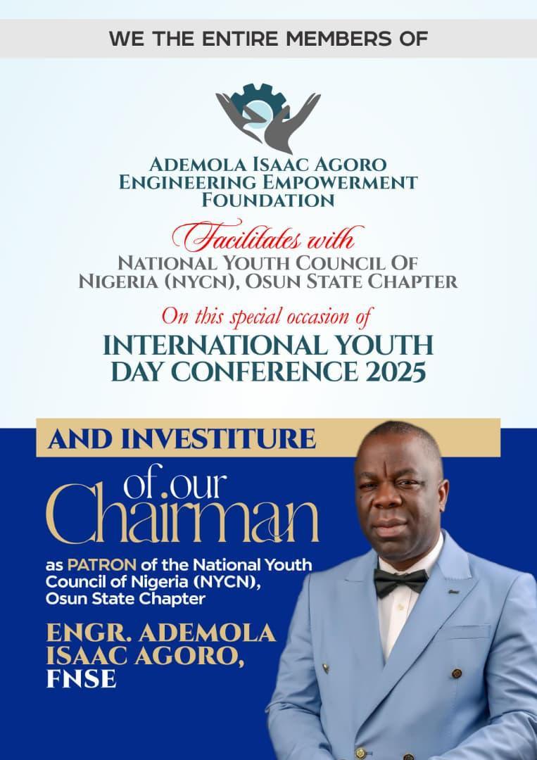 This prestigious honour is a testament to your exceptional track record of service, your tireless support for youth empowerment, and your unwavering dedication to community development across Osun State. Yourleadershipcontinuestobeabeaconofhopeandasourceofinspiration tomany,especiallytheyoungergeneration.