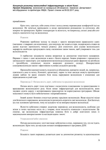 Концепція розвитку велосипедної інфраструктури в місті Києві. Проект документу, винесений на громадське обговорення. Замовник: Департамент містобудування та архітектури КМДА. Проект станом на 09.02.2017 року.