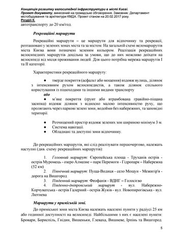 Концепція розвитку велосипедної інфраструктури в місті Києві. Проект документу, винесений на громадське обговорення. Замовник: Департамент містобудування та архітектури КМДА. Проект станом на 20.02.2017 року. Розділ ІІ.