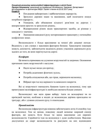 Концепція розвитку велосипедної інфраструктури в місті Києві. Проект документу, винесений на громадське обговорення. Замовник: Департамент містобудування та архітектури КМДА. Проект станом на 20.02.2017 року. Розділ ІІ.